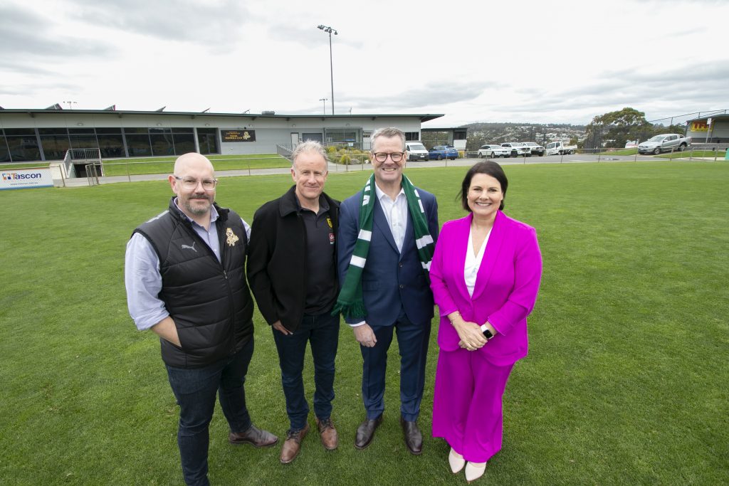 L to R: Dan Wylie (President Kingborough Tigers), Jeff Ross (President Kingborough Knights), Grant O’Brien (AFL-Tasmania Devils Chairman) & Paula Wriedt (Kingborough Mayor)