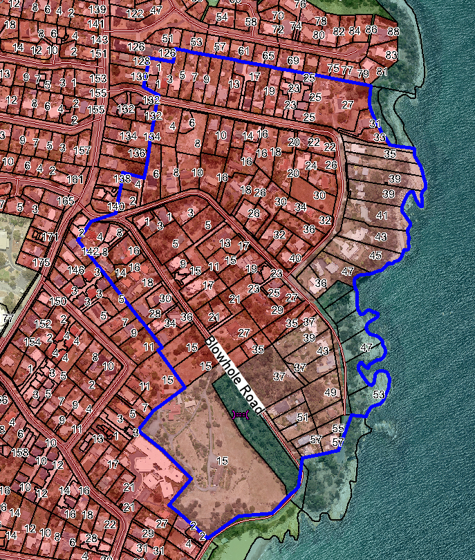The area encompasses the bluff above the northern end of Blackmans Bay beach – including Blowhole, Talone and Powell Roads.
