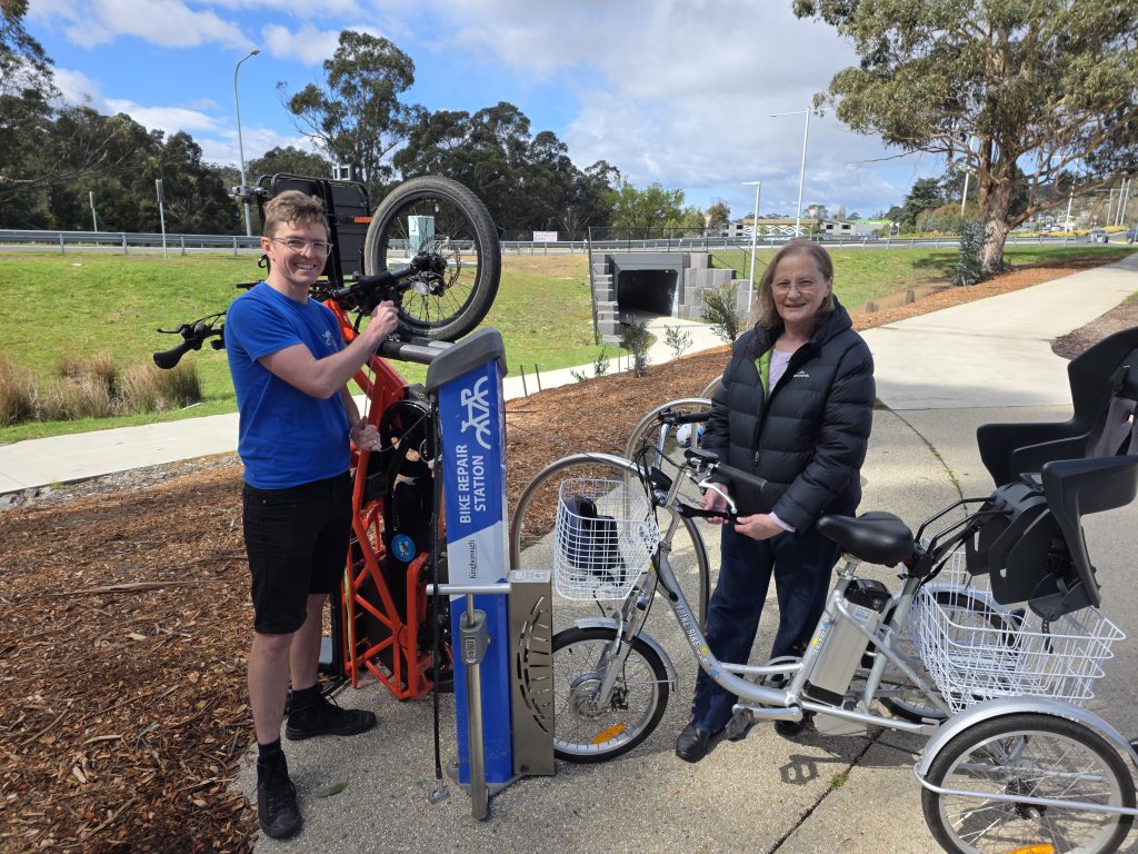 “The bike repair station has a bike pump, retractable tools and a wheel chock to hold your bike, allowing cyclists to fix issues with their bike and continue to enjoy their ride.