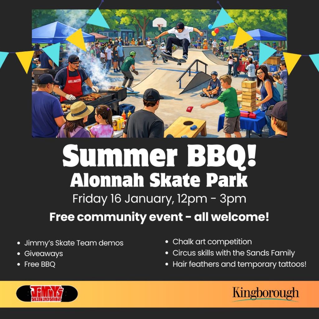 The Alonnah Skate Park on Bruny Island is set to host a free summer BBQ and community event on Friday, 16 January.