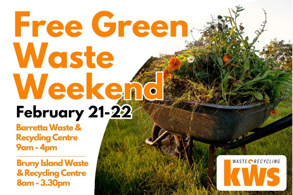 Kingborough Council is holding a Free Green Waste Weekend at both the Barretta Waste and Recycling Centre and the Bruny Island Waste and Recycling Centre on Saturday, 21 and Sunday, 22 February.