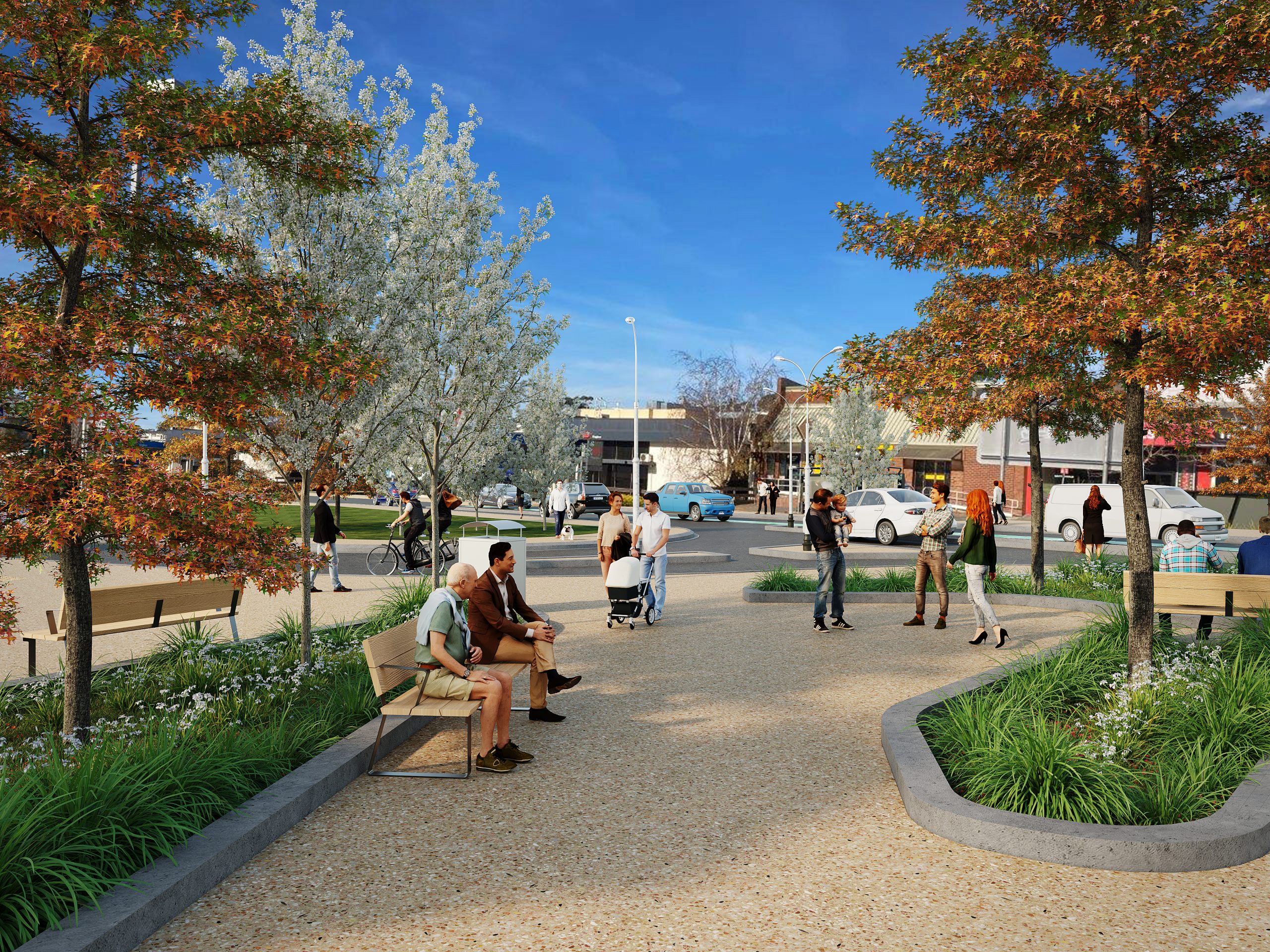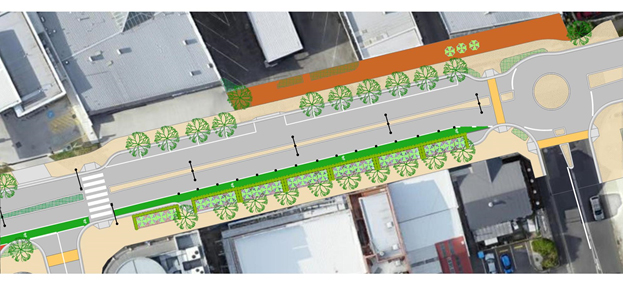 The design includes more street trees, vegetation, street art and furniture in the CBD.