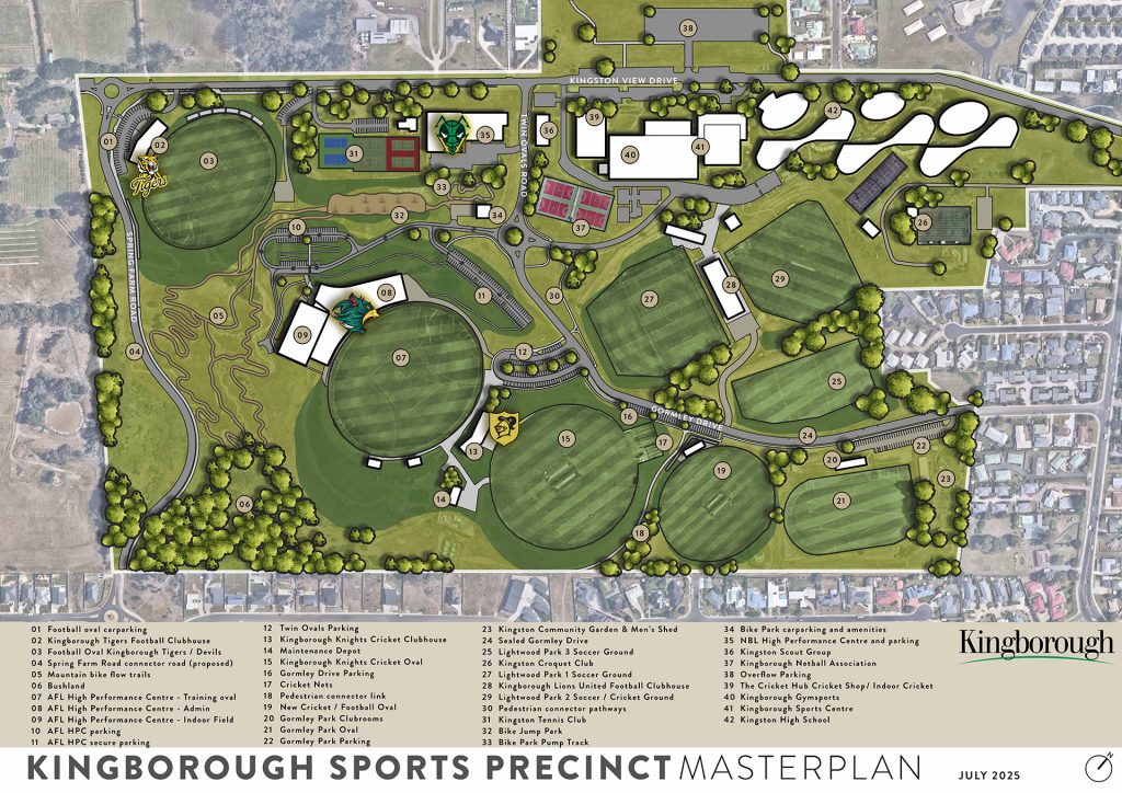 On 18 November 2024, Council received official notification that the Kingston Twin Ovals had been selected as the site for the development of the Tasmania Devil’s AFL High Performance Centre (HPC). The AFL High Performance Centre (HPC) will be a world-class training and administration hub for the Tasmania Devils Football Club (TFC) AFL, AFLW, VFL and VFLW teams, based at the Kingborough Sports Precinct in Kingston. This facility will become the home base for the TFC and all of their on-field and off-field staff.