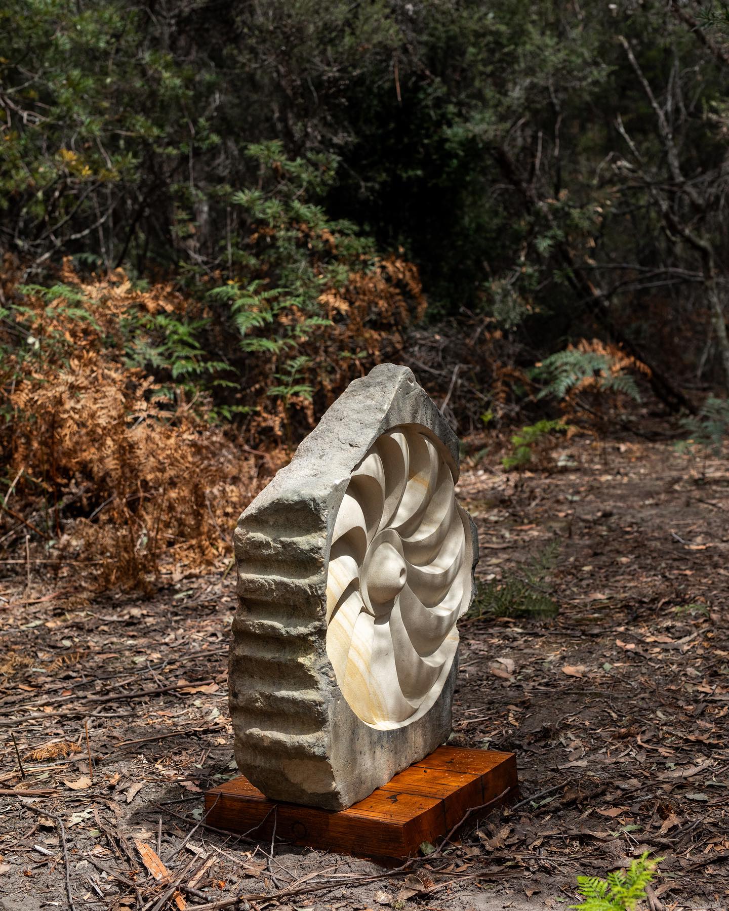 Artist statement: “The cycles of nature inspire the reawakening of Biotic Forms as they emerge from the earth like living forms, yet rigid and unyielding as the stone beneath. Infusing perceptions of buds, flowers and seeds with earth, stem and stone, a life-evoking grove emerges, being at once both earthly and alien.”