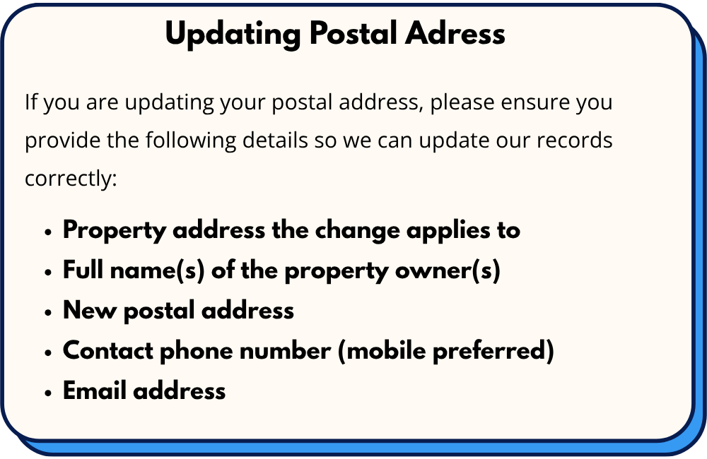 - Change of Postal Address (or email kc@kingborough.tas.gov.au with your change)
