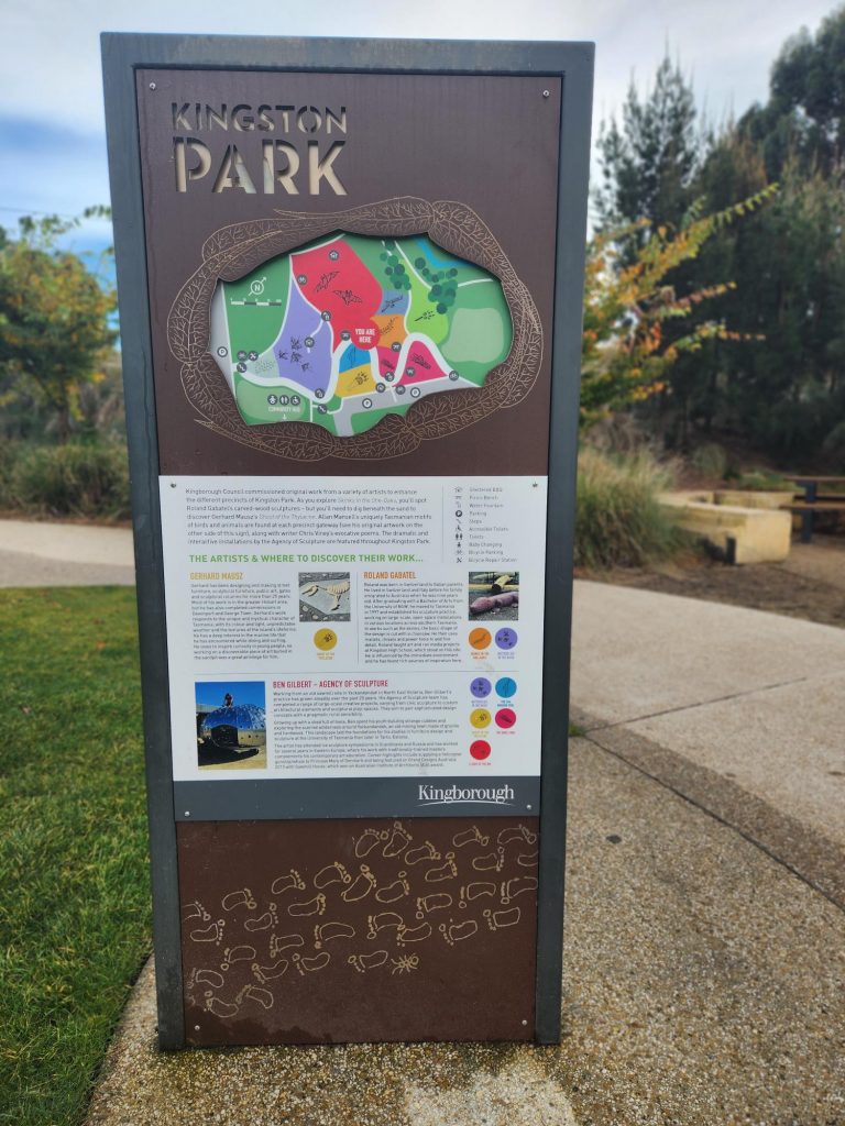 Kingborough Council commissioned original work from a variety of artists to enhance the different precincts of Kingston Park. As you explore Skinks in the She-Oaks, you’ll spot Roland Gabriel’s carved wood sculptures – but you’ll need to dig beneath the sand to discover Gerhard Mausz’s Ghost of the Thylacine. Allan Mansell’s uniquely Tasmanian motifs of birds and animals are found at each precinct gateway, along with writer Chris Viney’s evocative poems. The dramatic and interactive installations by the Agency of Sculpture are featured throughout Kingston Park.