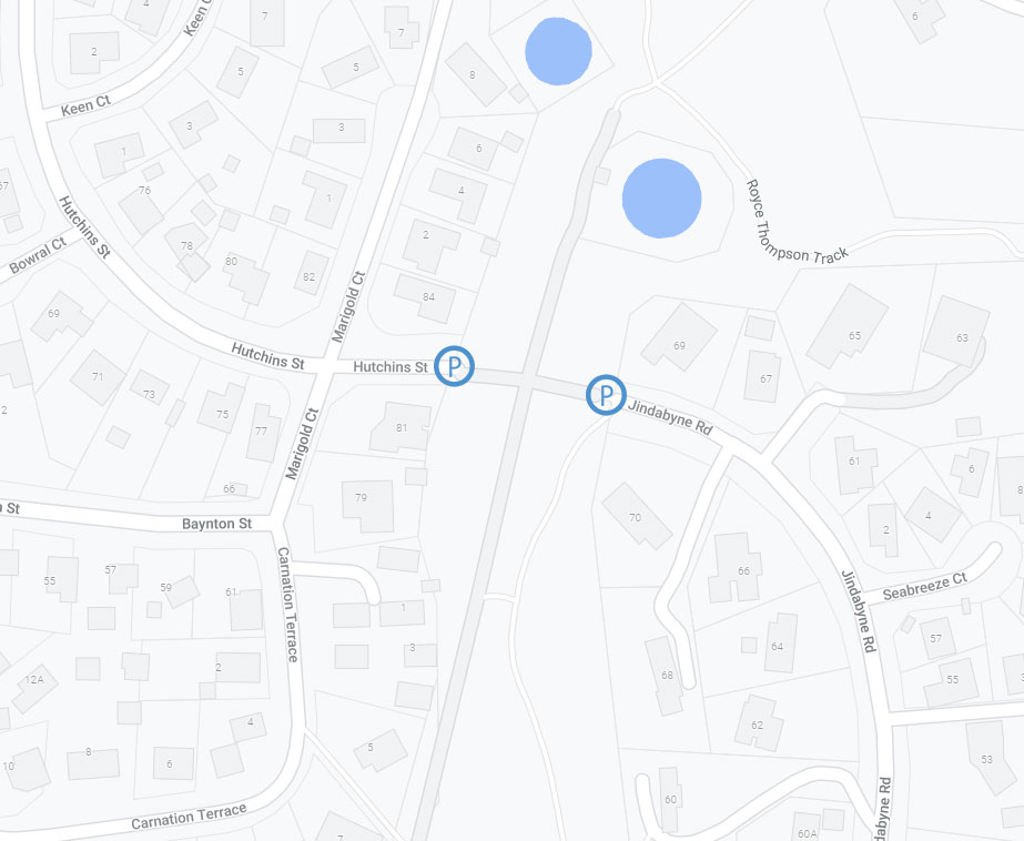 | PARKING | ![]() There are multiple access points to this reserve. Street parking available via Hutchins Street and the end of Jindabyne Road. CLICK TO GO TO STREET VIEW IN GOOGLE MAPS ![]() | |