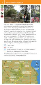| TRACKS AND TRAILS | Boronia Hill Flora Track - Click to access map and extract from Kingborough's Tracks - For walkers, horse riders and cyclists (6th Edition 42 Tracks).![]() |