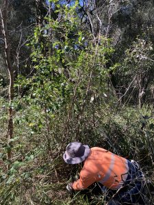 NAB staff controlling wirilda in bushland containing threatened flora.
