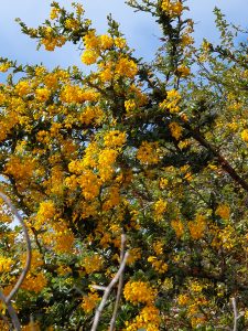 • Flowering occurs throughout the year but most heavily between September and January. The flowers are golden yellow and spherical in shape.