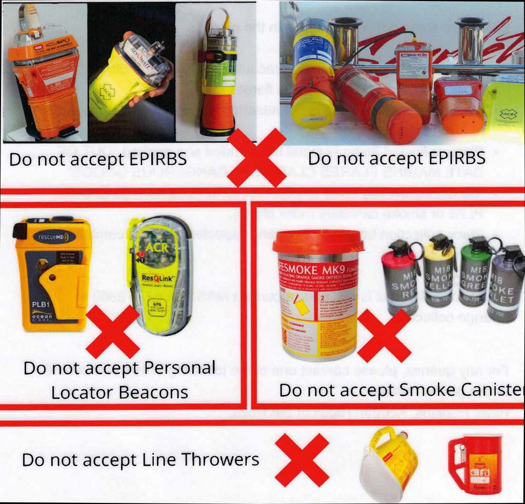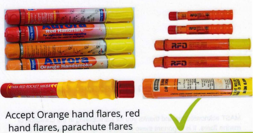 • Expired marine flares – Orange hand flares, Red hand flares and parachute flares